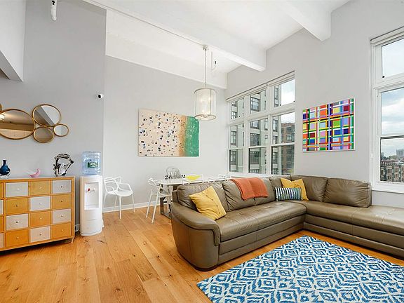 Distinctive for its open, flexible layout, expansive South-facing views, incredible all-day light, 14 foot ceilings, and its amenity-laden environs within the esteemed waterfront enclave, the Hudson Tea Building, Residence 6X is an exceptional 2 Bedroom, 2 Bathroom generously spread across 1,170 sq ft that includes secure garage parking for 1 car, a free private shuttle with direct service to Hoboken Terminal (PATH, Ferry, Light Rail, NJ Transit), and is just a four minute walk to the 14th Street Ferry that services both Midtown and World Financial Center. United by rich, dark wood flooring throughout, Residence 6X offers an impressive array of storage, and is replete with elegant, graceful customizations tailor-made for enhancing its masterfully articulated floor plan. Centered around a living and dining area framed by 10 foot windows and an open kitchen with GE Profile appliances, Residence 6X allows for uncompromised, easy living day-to-day and effortless entertaining on even a moment's notice, insuring that you, your family and your guests will experience home and life on the Hoboken waterfront like never before. Rise and shine every morning in a Master Suite that exists solely to revive, pamper and provide some very well-deserved privacy. It features open views that stretch all the way to downtown Jersey City, a full walk-in closet, a custom built-in closet with work-desk, a remote-controlled blackout shade and a meticulously outfitted Master Bathroom with a recently updated vanity. The 2nd Bedroom also has open views South to downtown Jersey City and beyond as well as a large custom closet and additional built-in storage. The Guest Bathroom is built-around an oversized tub and crisp vanity, and has a sizable linen closet. Residence 6X is further enhanced by Hunter Douglas window treatments, recently upgraded and installed GE Zoneline air units, a 24 bottle front-vent wine fridge, and an in-unit Washer/Dryer. Statuesquely situated along the edge of Hudson River overlooking New York City, the Hudson Tea Building is a unique, meticulously maintained development that offers unmatched access to all forms of transportation, the Hudson River Waterfront Walkway, and everything that makes Hoboken and New York City so special. In addition to a 24 hour concierge and a dedicated, skilled service staff, the Hudson Tea Building offers residents and their guests superlative amenities, including: a 2700 sq ft Fitness Center featuring all new equipment, internet-connected Peloton bikes, free daily classes and locker rooms; a Children's Playroom; a Resident's Lounge; a free Shuttle to and from Hoboken Terminal; an on-site dry cleaner; and CHOC-O-PAIN (coffee shop, soon to be completed). All common areas within the complex are to be improved beginning early 2018.