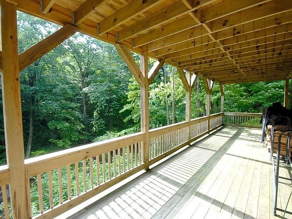 Absolutely beautiful log cabin situated on Stony Creek and Big Sandy stream. Private location cannot see any other properties from House. Home overlooks the stream. Extra-large wraparound decks with covered porch. One-of-a-kind Mountain paradise! Other features include: stone fireplace, three full baths, workshop, security system, private drive, borders State Forest, stream access and much more!