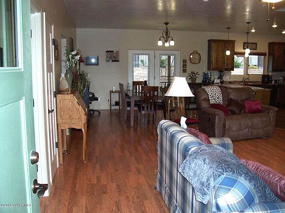 Beautiful 3BR, 2BA, 5 star energy rated home with solar (owned) & HRV Air Exchanger. Great views from the front window and porch. Front and back covered porches with added concrete. View from 12'x18' front patio, and back patio is 10'x26'. Price includes washer, clothes dryer, refrigerator, water softening filter system and reverse osmosis, added garage cabinets and shelving, sauna in master bath, outside jacuzzi, and plywood in garage attic space for additional storage. Cougar Model has been expanded to 1652 square feet, including a wider garage. Huge 13'6''x 17'6'' Master bedroom, BR #2 is 11'6''x 12'6'', and BR #3 is 12'6''x 15'6''. All outside irrigation is fed from the association well. Inside water is City Of Cottonwood. Brand new carpet installed in all bedrooms and closets.