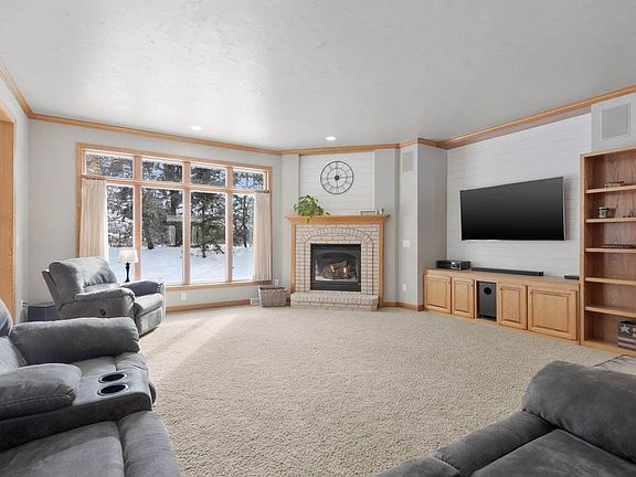 All brick zero entry ranch home featuring 3 bdrm 2.5 ba 3 stall garage with garage access to basement. Large foyer opens to spacious living room with 9+ ft ceiling with gas corner FP w/shiplap featured above, custom cabinetry w/shiplap accent fits very large tvs. kitchen features plentiful cabinetry, corner pantry, island, and hard surface counter tops. formal dining rm overlook patio with beautiful pergula built on full footings if future sunroom suits you. Spacious master bedroom easily fits a kingsize bed and furniture! master bath boasts a corner bubble tub. Lower level egress windows.