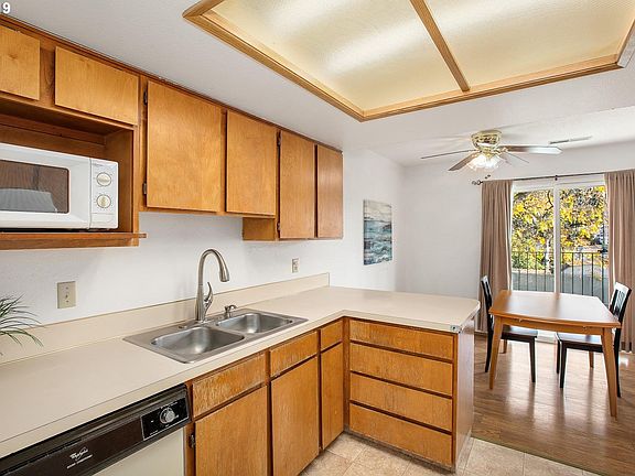 Sold as-is: no structural issues, only cosmetic. Come see this 2 Bed, 2 Bath Beaverton condo featuring a covered balcony with storage closet that overlooks a park-like view! Enjoy a spacious great room, dining nook, eating bar, and more! Includes extra-deep garage with shelving. NEW exterior painting + weather strips + LED kitchen lights! HOA $287/month. ALL APPLIANCES INCLUDED!