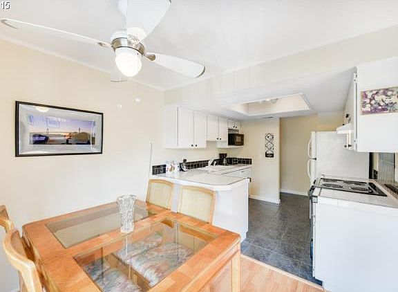 Bright, updated, spacious upper-level condo in quiet, prime-Beaverton location. Both kitchen and bathroom have tiled counters and floors. Large balcony offers extra storage and a gorgeous view of trees and greenery. Includes deeded parking spot and huge, 2 car tandem garage that extends as long as the building itself. Lots of available visitor parking for family and friends close to the unit. Low HOA fees. Washer/dryer. All appliances.