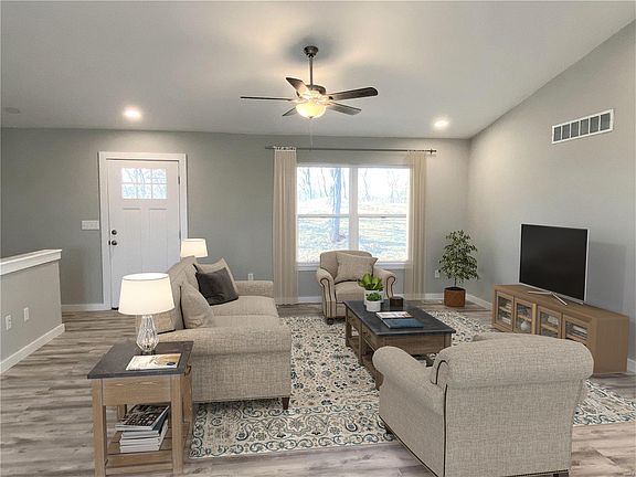 Beautiful Open Concept Ranch with Divided bedroom plan, Main Level Laundry. Beautiful Kitchen with Island, Dining area and door to deck and view. Master Suite, Master bath with double vanity and large Walkin closet. Lower Level is unfinished with walk out, rough-in bath and a window so you can dream about how you will finish. All this on your own private 5acre lot. This home is finished and ready for you. Come see!