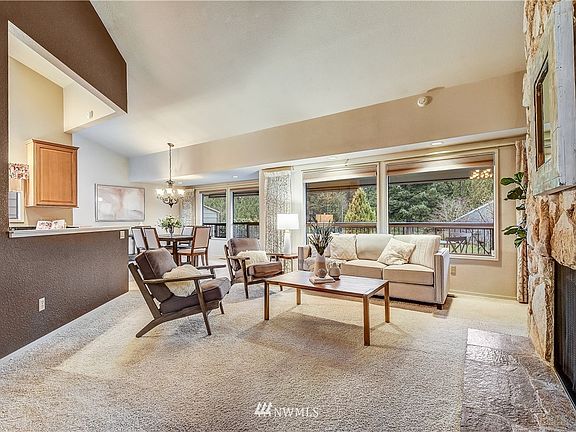 Golf course views & serene living! Enjoy the best that Mill Creek has to offer, spacious light filled style condo nestled in the heart of desirable Fairway Village. Open Flr plan, vaulted ceilings, skylights ,lrge living room w/FP, airy kitchen, dining area & large deck that overlooks the 4th Fairway. Main fl Master w/entry to Atrium, walk in closets, add. bdrm & laundry rm. Huge Fmly room, bedrm, FP, wet bar & 3/4 bath on lower. Massive stge rm & patio access. 2 car garage w/add. stge in loft