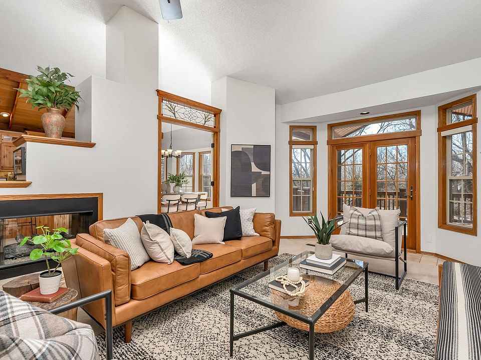 Custom-designed Ranch home in hidden gem neighborhood. Forest tranquility, privacy, comfort, entertainment, and ample space on a quiet cul-de-sac. This home is beautifully landscaped with limestone rock curved beds and tree lined grounds. The vaulted foyer takes you into an open concept living space that includes the living room, dining, kitchen and corner sunroom area which gives the home it's airy feel. Several windows and glass doors fill the entire space with natural light. The kitchen offers updated custom cabinetry, generous counter space, tile backsplash, pantry, appliances, ample storage, and a seated peninsula. At the garage entrance is an inset open closet perfect for a drop zone and the convenient main-floor laundry room. Step out to the spacious deck overlooking the yard, where a large firepit with an iron Wichita-emblemed fire ring sits against a serene forested backdrop. The covered deck includes another vaulted ceiling with a fan/light combo and can be screened in for added comfort. The yard is fully fenced. The outdoor setting is perfect to enjoy wildlife from the wooded area and take in breathtaking sunrises and sunsets. The owner's suite includes a second gas fireplace, a tray ceiling, walk-in closet and ensuite with dual sinks, separate shower, soaker tub, privacy nook water closet, and additional storage closet. A second bedroom with a partially private bath is also on the main floor. Downstairs, the spacious and versatile family/rec room includes a wood fireplace, view-out windows and walk-out access to the backyard. This level also features a large bedroom, a bathroom, and a partially finished non-conforming room with Berber carpet, central air, and electrical -offering potential for a fourth bedroom, workout area, homeschool space, or theater room. An additional unfinished nook provides additional storage or the potential for a soundproof video/ game room. Builder plans include potential 4th or 5th bedrooms. The landscape is maintained by a sprinkler system on an irrigation well, roof replaced in 2010 with class-4 impact resistant shingles, and 2015 HVAC and compressor. The community includes rare private Reserves with walking trails, fishing pond, and picnic area. This is a MUST-EXPERIENCE with its prime location, stylish appeal, and easy access to main roads and shopping.