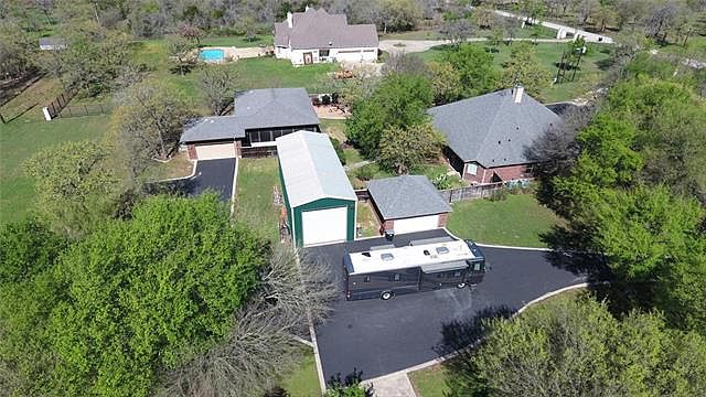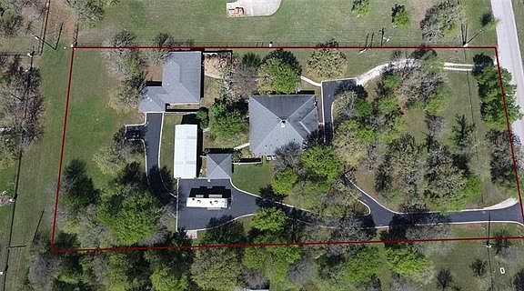 Fantastic 2 acres with lots of trees. 2 Homes, 2-2 Garages, Workshop, court yard between the homes. The main home has a new kitchen with quartz counters, new cook top and ovens, central vacuum system, engineered hardwoods, tile floors and carpet, 2 living, 2 dining and oversized screen patio, plantation shutters TO. Detached Guest home has 1/1.5/2. Mesquite flooring, granite counters, separate laundry. The workshop/barn has all utilities. The driveway is paved. Nearly 100% fenced. Short term rentals ok!