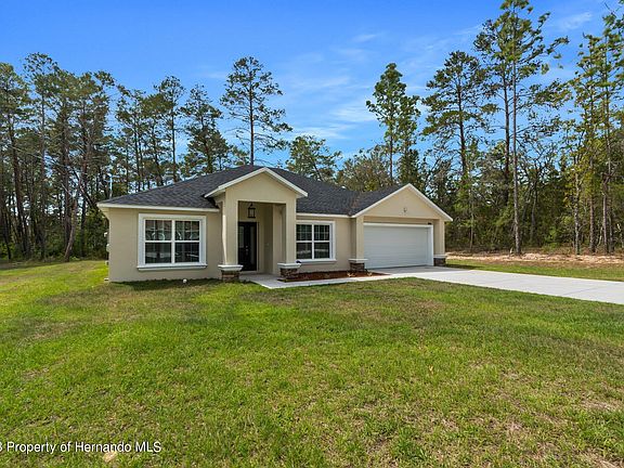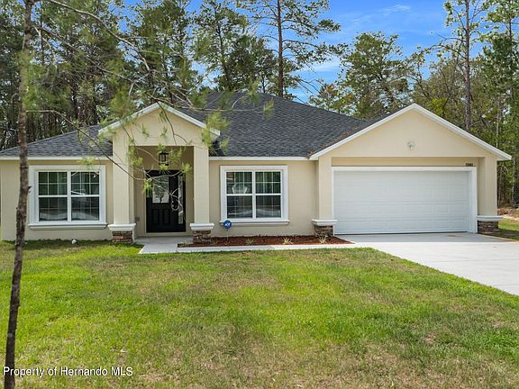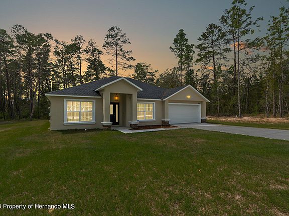 JUST REDUCED!! MOVE IN READY!! This gorgeous 3-bedroom, 2-bathroom home comes complete with formal dining room, separate living and family room with spacious open floor plan and souring 12-foot ceilings. The kitchen features solid wood soft close cabinets, granite countertops, and LG Stainless Steel appliances. Master bathroom includes a huge walk-in Framed Glass shower, toilet room, walk in closets and dual vanities. All furniture conveys including a queen size waterbed with heater in second bedroom and in the master, bedroom is a queen size sleep number bed with remote. Builder's warranty through October 31,2023. All situated on .46 Acres, plenty of room to store your toys or add a pool. No HOA fees! Located just minutes from 19, this home offers a commute into Brooksville, Homosassa and Crystal River. Conveniently located near shopping and dining. Call to schedule your showing today!