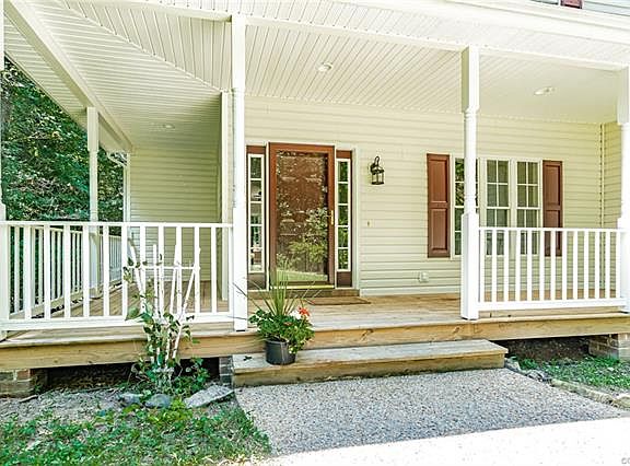 Come home to this lovely 4 bedroom home on 7+ private acres with a creek! So many upgrades with recessed lighting, bay windows, crown molding, chair rail, hardwoods, new carpet and paint, 42" cherry cabinets, kitchen island and so much more!. The huge master bedroom boasts a tray ceiling and corner windows, the large 2nd bedroom even has an attached room for office, play room, or private reading room. Enjoy cook outs on the large back deck that opens to the kitchen, or sit peacefully on the wrap around front country porch! On chilly evenings relax in front of the fireplace and watch the wildlife through the wall of large bay windows. You can even enjoy the kitchen fireplace as the family gathers for meals! Cosby School District. Come see for yourself!