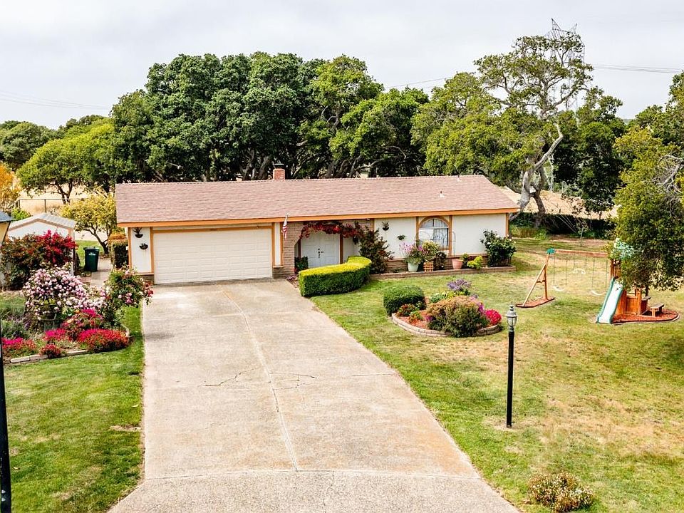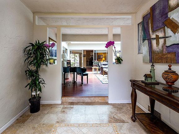 This well-balanced, idyllic Oak Hills property features custom interior improvements that give a unique flair to the central atrium that made this model famous. The original dirt floor gave way to laminate and travertine, while a partial wall established a decorative, subtle boundary between the atrium and foyer. The kitchen features tile countertops and newer appliances, while the living room features a wood-burning fireplace and easy access to the pièce de résistance: the stunning backyard. Massive oaks stand like stoic guardians and have countless branches to hang swings or hammocks from. You can unwind and enjoy the unobstructed views in solitude while enjoying treats from your 20 different fruit trees - or share the views with guests you entertain on the large paved area that has built-in features like benches, a brick BBQ, and dining bars. No septic tank, high-speed internet readiness, and its coveted cul-de-sac lot make this outstanding property an unmissable opportunity!