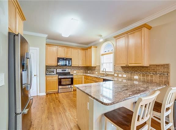 Enjoy living just minutes from shopping, groceries, a brand-new athletics complex, and Downtown Charlotte in this quaint neighborhood. This 4BR home has a grand 2 story foyer, the great room offers a media niche (wired for surround sound). Gorgeous kitchen w/maple cabinets, granite countertops, and tile backsplash. Master has a walk-in closet, dual sink vanity, garden tub & separate tiled shower. Blinds throughout. Spacious guest bedrooms and a full bath. Entertain with a wonderful extended deck overlooking a beautiful fenced wooded backyard. Irrigation system included. Wonderful amenities in this neighborhood include Pool, Clubhouse, Playground & Courts.