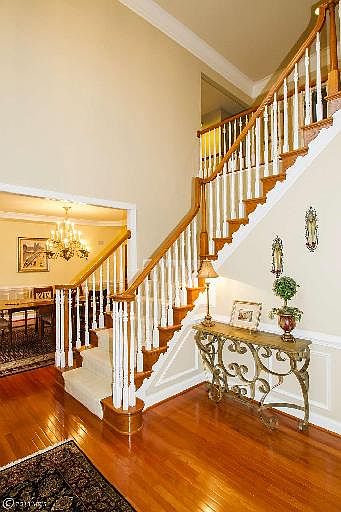 One acre wooded estate home with exquisite appointments including a two story foyer with turned staircase, decorative mouldings, gourmet kitchen with oversized island, 2nd private staircase, FR with a wall of windows, MBR with 2 walk in closets and sitting/study, Private level also includes 4 add'l bedrooms with buddy baths and a loft/sitting area. Natural gas, covered deck and lower lvl patio.