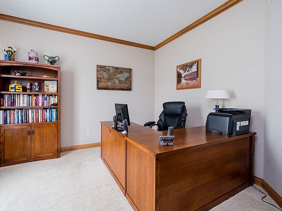 - Ceiling Fan(s), Kitchen Island, Walk-In Closet(s), Laminate Counters, Eat-in Kitchen, Formal Dining Room, Entrance Foyer, Tray Ceiling(s), Ceiling-9+, Tub and Separate Shower, Jet Tub, Twin Sink Vanity, Natural Woodwork, Custom Cabinetry, Chair Rail
