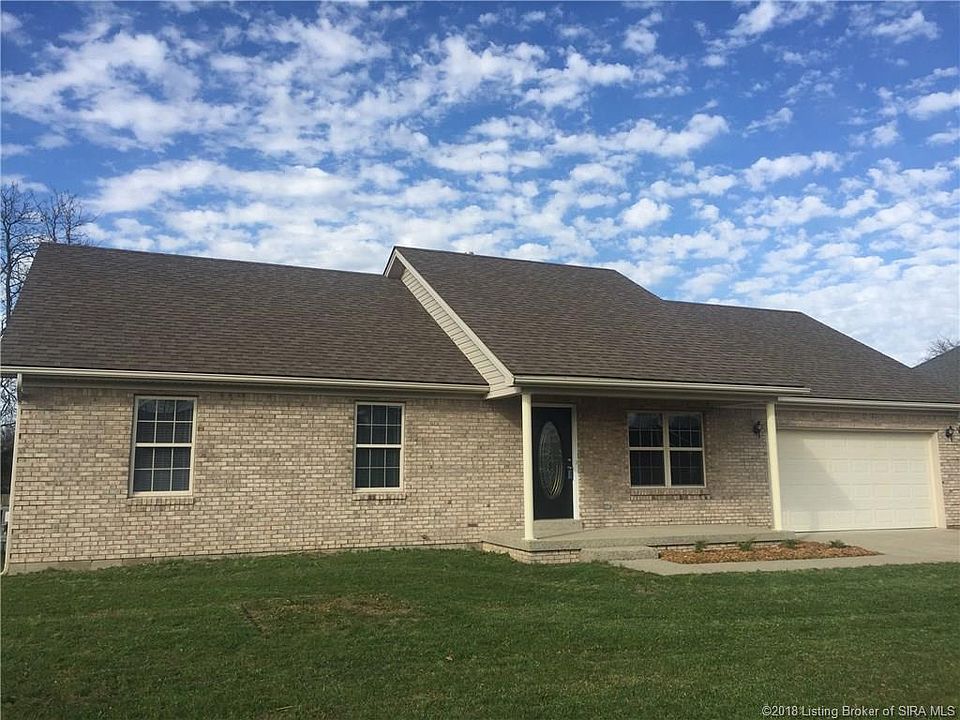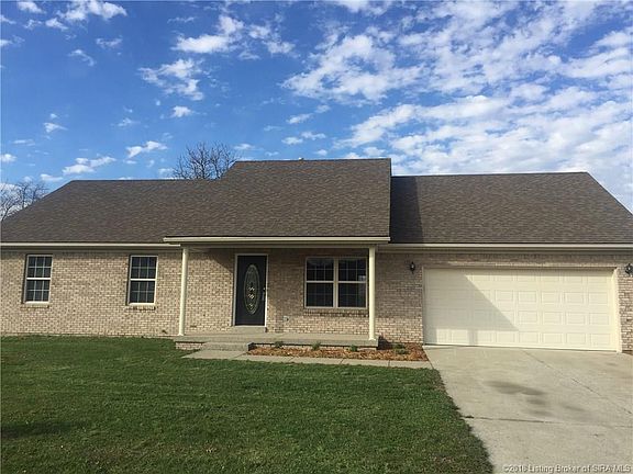 GREAT VALUE for a conveniently located ALL BRICK 3 BR 2 BA LIKE NEW home within 15 minutes to Louisville. OPEN CONCEPT, IMMEDIATE POSSESSION. Home was extensively renovated back to new including: Sherwin Williams Intellectual Gray Paint top to bottom, upgraded BRUSHED NICKEL lighting and finished fixtures, and new sump pump. Large 16 foot ceilings in HUGE LIVING ROOM connected to your all tiled floor EAT-IN KITCHEN and expansive kitchen. All new STAINLESS STEEL APPLIANCES with warranties on them, beautiful counter tops and oak cabinets with upgraded pulls and handles. Large bedrooms with walk-in closets. Master features large closet with tons of shelving and a private bathroom and view of backyard. Large double french doors leading to your private patio and spacious FENCED IN YARD that extends into the trees. Great covered front porch and large garage with STORAGE CABINETS and work top area. This home qualifies for as little as NO MONEY DOWN 100./. USDA FINANCING to those who qualify. Compare the price, sq ft to local new construction and its a no brainer! Call to see today! Selling agent is licensed agent/owner.