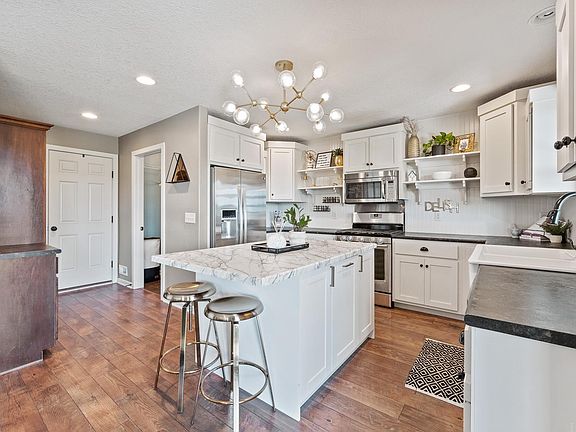Wow! Immaculate 4 bedroom home on a finished partial basement with main floor master on a quiet cul-de-sac street with no neighbors behind in Homestead schools! You will love the location and curb appeal as soon as you pull into the driveway! Enter through the foyer and wonderful wainscoting welcomes you as well as a formal dining room w/ a wooden barn door. The large living room showcases massive windows that allow for daylight to pour through the main floor! The room transitions seamlessly into the modernized kitchen with an additional eat in space, vinyl plank flooring throughout, painted white cabinetry, new island & light fixtures, farm sink, & excellent SS appliances that all remain with the sale of the home. The laundry room features additional cabinetry, a folding table, & W/D that stay! The huge main floor master has an en-suite with dual vanities, tiled flooring, walk-in closet w/ tamers, & soaking tub + walk-in ceramic shower! Upstairs you will find 3 guest bedrooms, all adequate in size as well as a full bath w/ dual vanities. One of the bedrooms leads to two additional rec rooms that are perfect for a home office, craft area, play area, & so much more! The finished basement gives you yet another living area plus ample room for foosball, ping pong, and/or a pool table! That’s not all, the outdoor area is sure to impress you! The covered patio features a floor to ceiling stone wood burning fireplace, with privacy from neighbors. Additional concrete was poured recently to add even more to the outdoor living area giving you many different options to set up for grilling, parties, & events! Relax out back and be at peace with no neighbors behind! Lakes of Jonathan’s Landing is an excellent sub with tons of sidewalks, association ponds, and even an association pool! A great location close to many different restaurants & bars, this is one you have to check out!