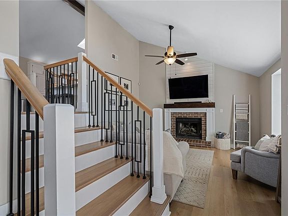 Welcome to a home where every corner tells a story of style and comfort! This stunning home has a great transitional vibe filled with updates & offers tons of impeccably designed living space. You'll love the painted kitchen cabinets, highlighted by under and upper cabinet lighting, and brand-new stainless steel appliances. The living area features a cozy fireplace with a distinctive surround, accented by a striking faux beam. Stay connected and secure with smart home features like an Ecobee thermostat, Schlage smart lock, and Arlo video doorbell. Recent updates include luxurious LVP flooring, contemporary base trim, and elegant interior doors. Remodeled bathrooms and a modernized laundry room (2022) add a touch of sophistication. Amazing cul-de-sac lot (just under .25 acre) with an expansive deck, private outdoor space and huge fenced lot offer a serene retreat. Great location close to shops, restaurants, easy highway access and feeds into premier Olathe Schools (Heatherstone, Pioneer Trail and Olathe East). This home is where your next chapter begins!