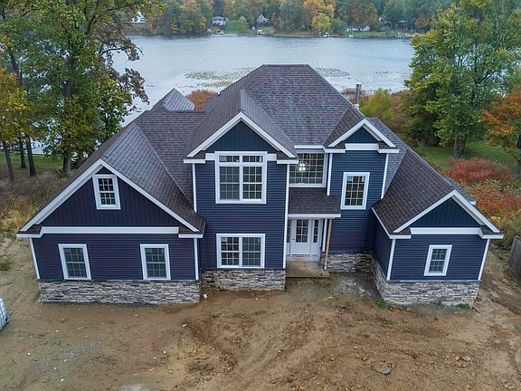 BEEN DREAMING OF YOUR OWN LAKE HOUSE? NEW BUILD (Driveway done June 2023) with 156' of waterfront property on peaceful Myers Lake! This beautiful home has 3 bedrooms and 3.5 baths with a full finished walkout basement featuring breathtaking views of the lake from most rooms. This open concept home has a beautiful two story living room with windows to the top. The custom eat-in kitchen has quartz countertops, a tiled backsplash, SS appliances, and a breakfast bar, including a deck off the back that's perfect for entertaining! Wake up in the morning looking at the lake in the main level master suite. The upstairs has 2 beds, a bath, a loft area perfect for an office, and a bonus space. Basement has a huge rec room with wet bar, full bath, and an extra room to use as you please. Main floor laundry as well as a formal Dining or office, and a 3 car garage. 2 hrs. from Indy and 2 hrs. from Chicago!