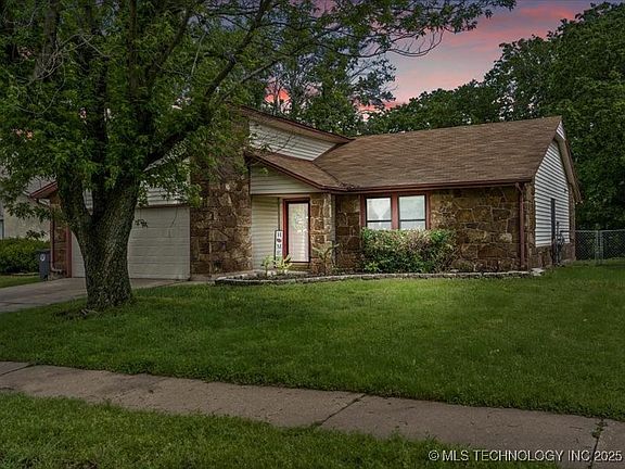 Welcome home to this charming 3-bedroom, 2-bathroom residence in the highly sought-after Broken Arrow school district! Nestled on a quiet street, this home backs to a serene greenbelt, offering peaceful views and added privacy. Step inside to a spacious vaulted living room with beautiful exposed beams and a cozy fireplace—perfect for relaxing or entertaining. Enjoy the benefits of newer windows and upgraded insulation for year-round comfort. The backyard is a true retreat with a large shed for extra storage and plenty of space to play or garden. Don’t miss this one!