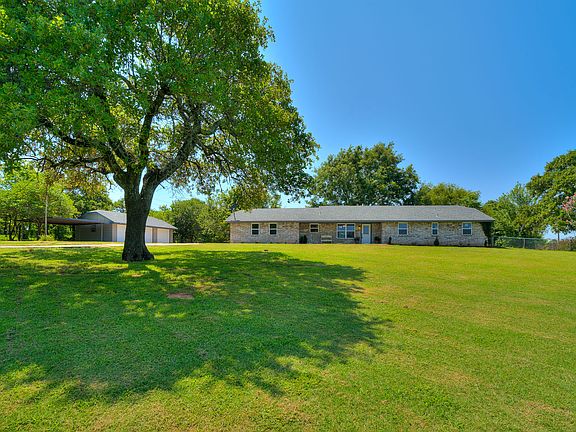 Your own piece of paradise on this 2.35 acres! Beautifully remodeled brick home on acreage within the Moore school district. It has a large open kitchen with new stainless-steel appliances and breakfast bar, dining, and living area with a large fireplace. There are three bedrooms, two full baths and an oversized two car garage. Additional structures include a detached three car garage with new garage doors, a two car carport and covered back patio. The front and back yard have beautiful large pecan trees and black oak trees. There is a separate fenced in vegetable garden area that has peach trees and a separate fenced in pasture/wooded area that has an assortment of beautiful trees. The front yard, back yard, garden and pasture are all separated and Perfect for horses! The property has a chain link fence around the entire property line! Come see it before it is gone! Built in 1978 with approx. 1,634 square feet and 2.5 AC MOL