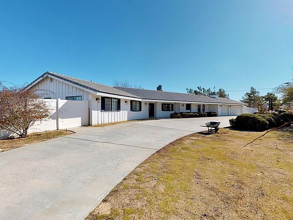 Carriage style house in the Rancherias area of Apple Valley.Loaded with estate features.Next door to the Apple Valley Golf Course.Tucked away on a 1.5 acre lot.Well loved sprawling home has had a knockout interior redo yet retains its original charm.Ultimate privacy is created by a one acre setback and longgggggg circular driveway.Entering the twin driveways, jack rabbits and natural desertscape escort you to the sprawling home.The 1/2 acre backyard with specimen trees and roses is fully enclosed with fresh white vinyl fencing.The custom wrought iron front door that greets you is one of a kind! Inside is an 2020 renovation.New 12x24 porcelain tile floors with sculpted mid height baseboards create the right outline and flow throughout the home.Textured custom walls.Sunken living room has raw cedar ceilings, new picture window and banquette.New carpeting in bedrooms.All three bathrooms meticulously accented with new tile, fixtures, toilets, sinks and lighting.New propeller ceiling fans throughout.The gourmand kitchen has Calcutta white quartz waterfall counter,new Jarlin all wood cabinetry, glass backsplash,stainless farmhouse sink,pendant lights,new LG appliances.Adjacent den has new Bonroy Stone fireplace with surround sound and clever wire camouflage. Two sunrooms(200 sq. ft. each)expand the master suite and den to new proportions and light.Solarium?Nursery?Gym? Separate laundry. Three car(850 sq. ft.)finished garage.See attached docs regarding features and renovation detai