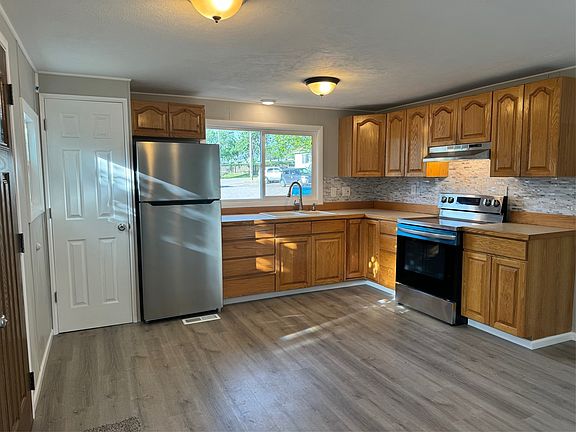 This newly remodeled mobile home on a rented lot in Rivers Edge Estates is just lovely! The setting is so serene too. This 1974 home has 896 sq ft with 2 nice sized bedrooms and 1 bath. New metal steel roof, new high-end windows, new waterlines, new refrigerator, new oven range and hood, new kitchen faucet, new interior and exterior doors, new light fixtures, a new shower, new bathroom vanity and fixtures, new toilet, and all new flooring. Monthly lot rent is $475/month and includes water, sewer, and garbage. Call Jana Weaver at 406-868-7757 or your Real Estate Professional today.