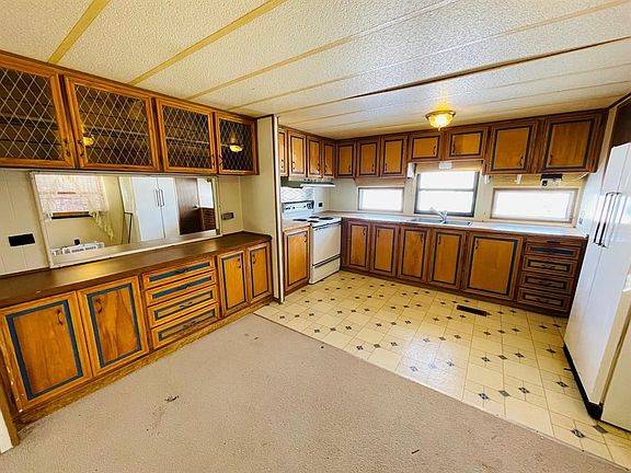 2 Bedroom 1 Bath 1976 14X65 Gerring Holly Park singlewide mobile home with an addition. Lot rent is $475 a month that includes water, garbage and sewer, owner responsible for garbage and sewer expense. Plenty of storage throughout the home! The kitchen nicely flows into the large open living space. Purchaser is responsible for obtaining trailer park acceptance through parks application process and fee.