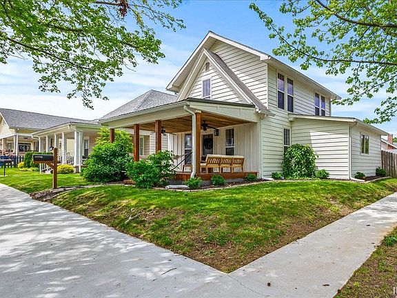 This 2-story, 3 bedroom, 2.5 bath farmhouse style home is located in a desirable neighborhood on a corner lot. The primary bedroom with a beautiful attached bath is on the main level. Two additional bedrooms and another full bath are upstairs. The step-saver kitchen is equipped with custom cabinetry, granite counter tops and stainless appliances. A mudroom/laundry is on the main level with access to a spacious covered back deck. You can enjoy the fenced backyard's fire pit area or play a game of croquet or volleyball. For the enthusiast, the shed has been converted to a weight room. The 2-car garage has ample space for a workshop. A NEW ROOF IS BEING INSTALLED WITH A FULL TRANSFERABLE WARRANTY TO NEW OWNERS!
