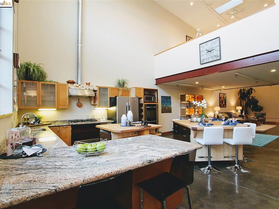 Your Urban Oasis Awaits. This industrial live/work loft might be cool to look at, but it is oh so warm and inviting. The International Lofts is an electric car friendly, gated park-like community located just 3 blocks from BART, and minutes from 880, 580 and OAK. While most of the units at "The Lofts" have 18 foot ceilings, tons of skylights, huge windows, and an outdoor patio, C2 stands out as a gem among gems. Not only is it one of the largest spaces in the community, but the gourmet kitchen has been upgraded with top of the line appliances and the flexible floor plan lets you decide how you want to live. As a bonus, it's also one of the few units to come with 2 deeded parking spaces. Come experience the love of The Lofts for yourself. Open Sunday 5/26 from 1-3pm.
