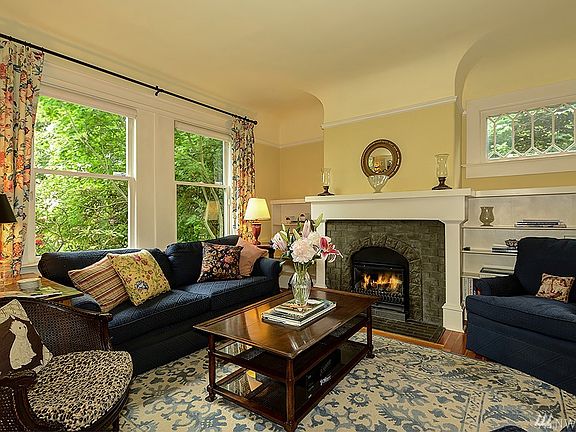 Classic, charming, light-filled & loaded w/character. Great floor plan flows easily thru comfortable living spaces. Coved ceilings, wood floors, cozy fireplace, gorgeous built-ins, & spacious kitchen w/sunny eating space. 2 sets of French doors open to lush, private gardens & entertaining-sized deck. New garage with separate exercise studio/art studio/private office space. 2 cheerful bdrms up (1 w/ ensuite bath), large full bath + office/sitting rm. Tons of basement storage & rec room space.