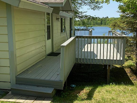 Escape to the peaceful private shores of Hand lake and enjoy the most beautiful sunsets time after time! This seasonal cabin boasts panoramic lake views whether you are inside making a meal of fish or outside grilling on the large deck or just relaxing at the lakeside firepit in the evenings! The fully insulated accessory building was constructed in 2019 and has been great for overflow guests at the many family gatherings that have been held here over the years! Across the roadside there is almost 300 acres of state land that wildlife is constantly moving through and assures the continued privacy of this area. Septic IS in compliance, new drilled well, pressure tank and hot water heater in 2021. Other recent updates include new stainless refrigerator & stove last year, deck and stairway was all replaced 5 yrs ago and newer storage shed. Everything is ready for you to immediately move in and get right into having fun on the lake!!