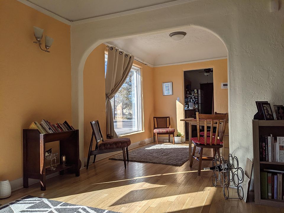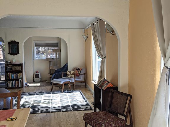 DNTN 'Burque awaits! Walk to Old Town, Civic Plaza, restaurants, brewpubs, museums, a new city park 2 blks away with pickleball, dog parks, and more. Fully furnished, short term lease, new kitchen appliances, all amenities (sheets, towels, dishes, bedding, Chef's kitchen, Prof's library) included in this cozy Midcentury Mod Southwest urban oasis. Style meets colorful comfort in this move-right-in Downtown gem, available for short-term rentals. Gorgeous fireplace, sunlit hardwood floors throughout, real A/C! Cozy backyard for de-stressing with a patio, gas grill, hammock and small garden. Large front and side yards with roses, trees and veggie beds; fully-fenced. Large detached 1-car garage (and large workbench) with 2nd-car driveway; nice neighbors. Sunflowers, morning glories, and a bit of a view of the Sandia Mountains. :)