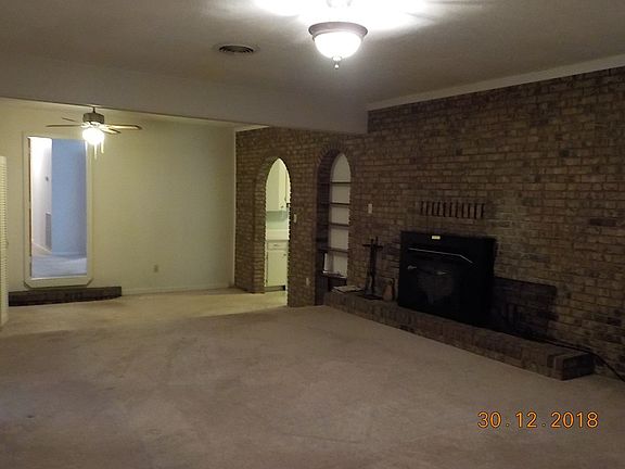 3/4 bedroom 2 bath home on 3.3 acres with huge 16 x 25 den, wood burning fireplace, large utility room comes with chest freezer, double garage with separate bay doors. Original living room could be a large bedroom. All kitchen appliances, stove, microwave vent, dishwasher, double deep ceramic sink, pantry closet. Large covered front porch - has a separate garage entrance or entry into foyer. Both baths have tub/shower units and are accessed from the hall. Formal dining room can also be a great office room with it's own closet. Separate wired shop/storage with lean to storage and 2 separate work rooms. Open mini pecan grove yard expands from road frontage. USDA eligible - that means 100% financing!
