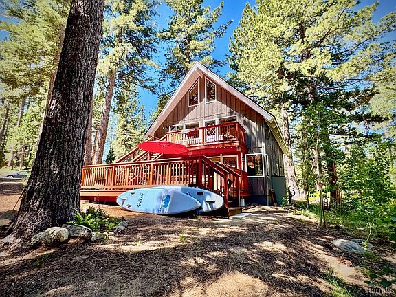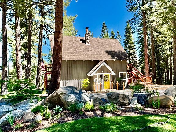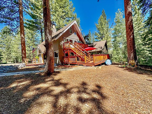 Step into rustic elegance with this meticulously crafted 4-bedroom, 3-bath retreat. This property boasts spacious accommodations with two distinct living areas, offering versatility for a variety of needs. The dual living spaces present an excellent opportunity for generating supplemental income, whether through rental possibilities or a separate guest suite. This setup is ideal for extended families, guests, or tenants, allowing for privacy and functionality while maximizing the property's potential.Country Living Magazine would be thrilled to feature this home's exquisite attention to detail and versatile floorplan. With an emphasis on design and functionality, this home is nestled against pristine US Forest land and across from State of California Conservancy. Enjoy the charm of multiple decks overlooking the tranquil surroundings. Among the numerous amenities this home has to offer are new exterior paint in 2023, a tasteful remodel in 2020, excessive storage, a butler's pantry, custom-designed baths, and Warm Waves infrared radiant in-floor heating in many rooms. The carefully landscaped grounds cover just under a half acre and create a welcoming atmosphere year-round.The lower floor living area is rich in mountain lodge ambiance. Features include expansive views to the forest, open beams with custom hammered black iron supports, original oak floors and an impressive rock wall with a wood-burning insert. The sizeable dining area features a Hinkley chandelier and a split log bar open to the kitchen. The kitchen features newer Bosch dishwasher, refrigerator and wall oven as well as a plethora of cabinet storage and counter space.The upstairs living area has been completely updated with newer flooring, appliances, a free-standing gas fireplace and again, direct access to a two private decks. The primary bedroom suite is located on the top floor and overlooks the middle floor living area.The park-like setting is central to a variety of golf courses, premier ski resorts, and renowned biking and hiking trails. Outdoor enthusiasts will feel they have found their utopia. Just fifteen minutes from Lake Tahoe's sparkling beaches and the vibrant downtown entertainment corridor, it seamlessly combines relaxation, blissful surroundings and outdoor recreational delights. The circular drive accommodates a number of vehicles including RV's.Most furnishings are negotiable, presenting an opportunity to move right into this turnkey haven designed for those who appreciate both luxury and nature's beauty.