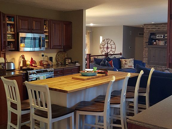 Your family is home! You'll appreciate the ways in which this beautiful home has been maintained. Modern, bright kitchen with eating area, a large dining room, living room with fireplace with great lush carpet throughout, master has nice size walk-in closet and en-suite. Owners remodeled kitchen with new stainless appliances, oversized island with eating for 6, pull out drawers in the cabinets and quartz countertops. Non-conformed 4th bedroom in basement. Poured foundation a great plus, and lots of space for workshop, rec room and more. The two car attached garage is extra roomy and there's a shed in the backyard area and a covered patio to enjoy the outdoor space. The golf course is a block away so you will enjoy the summer play. Close to schools and parks.