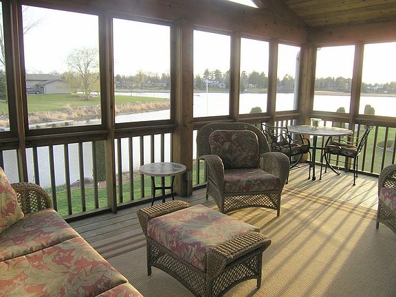 Waterfront condo living at its best with this standalone building with beautiful setting on the East Twin River. You can enjoy the great views from the open concept great room with large southern windows that also provide great natural light or from your spacious screened deck. Property has a heated 3 car garage 2 fireplaces and wood floors. The finished, walkout lower level has a kitchenette and patio for all your rivers edge entertaining.