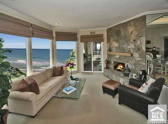 Unique opportunity to own an ocean front condominium with unobstructed views of one of the most desirable stretches of beach in the world. Enjoy white water ocean views from almost every room. A unique location to enjoy the sights and the sounds of the shoreline. Sit and watch surfers, dolphins and even the whales as you enjoy the ocean breezes from your private balconies, the kitchen, living room, den, dining room and the master suite. Special amenities in this unique three unit building include an ocean view spa deck, lush gardens, private gated courtyard and a rarely found wide ocean view lawn with a gas fire pit. Conveniently located with direct beach access to the sand and the beach trail. It doesn't get better than this must see property.