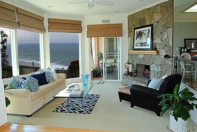 Unique opportunity to own an ocean front condominium with unobstructed views of one of the most desirable stretches of beach in the world. Enjoy white water ocean views from almost every room. A unique location to enjoy the sights and the sounds of the shoreline. Sit and watch surfers, dolphins and even the whales as you enjoy the ocean breezes from your private balconies, the kitchen, living room, den, dining room and the master suite. Special amenities in this unique three unit building include an ocean view spa deck, lush gardens, private gated courtyard and a rarely found wide ocean view lawn with a gas fire pit. Conveniently located with direct beach access to the sand and the beach trail. It doesn't get better than this must see property.