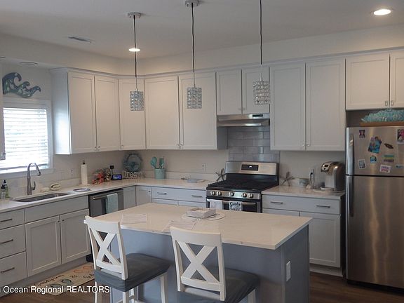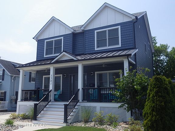 Totally new home completed in June 2021 in the perfect Belmar location: 3 blocks to beach / boardwalk and 3 blocks to town for shopping and restaurants / bars! Great, low traffic location between 15th and 16th Ave. Off street driveway parking for 3 cars. Roughly 2,600 of finished living space (1,920 sqft above grade and 750 sq ft partially finished basement). First floor features open floor plan and 9 foot ceiling heights through living room, dining room, laundry / mud room, and guest bedroom with full bath. Second floor includes primary bedroom with full en-suite bathroom and walk-in closet, two large secondary bedrooms, and full hall bathroom. There is also a finished basement with family room w/bar, a legally permitted large 5th bedroom, full bathroom, and utility / storage room. House also has a full attic for storage accessible by pull down stairs. Exterior features a covered front porch, low maintenance front yard with sprinkler system, concrete driveway, and a nice maintenance free rear yard with raised deck, large paver patio, synthetic turf, storage shed, outdoor shower, and custom landscaping. Smart home controlled HVAC, security system, whole house water water leak detection and automatic shut off, and lawn / landscape sprinklers. Transferable new home warranty.