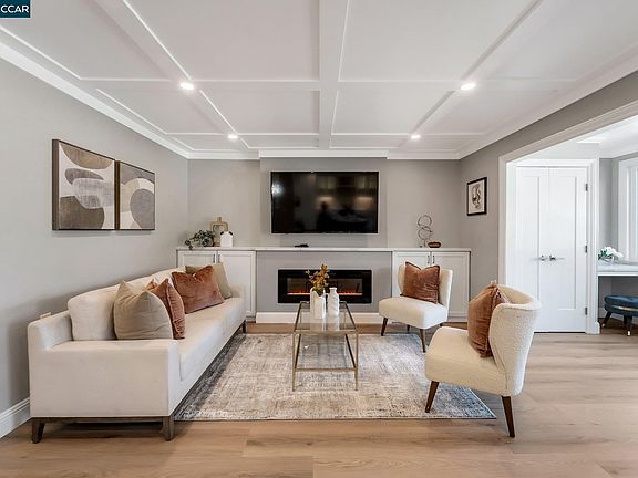FINANCING AVAILABLE! SOPHISTICATION MEETS FUNCTIONALITY. Spectacular expanded Sonoma remodel from the studs in, with 2nd bath, office space w/built-in storage incl. 2 desks and a private primary bedroom suite - plus all the bells & whistles and then some: beautiful coffered ceiling with can lights and built-ins on either side of the TV & fireplace. Lit white glass-door cabinets, a wine rack & wine fridge below accentuate the dining area. Pot filler & granite sink, a pantry and pull-outs throughout plus new SS appliances elevate the kitchen. There is storage galore incl. in the intricate primary bathroom designed with lots of built-ins. Both modern baths have light-trimmed mirrors and an attractive soffit with can lights above vanity/shower walls. A stylish new entry door and 3-panel frosted glass closet doors are just some of the special touches. A hall closet houses an LG wash-tower. Dual pane windows flood the place with light. The office and balcony look out beyond the flowering crape myrtles in summer to distant hills and the bedroom windows are shaded by a beautiful huge maple. Parking is more than plentiful. Rossmoor is a charming senior community with a plethora of amenities you can check out at Rossmoor.com. Open Sunday, Jan. 19th, 1-4, call agent for gate.