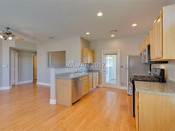 Fantastic 2 bedroom condo with Den that can be converted into 3rd bedroom. Gated community in Summerlin. Hardwood floors, upgraded baseboards, new stainless steel appliances in kitchen, all new carpet & paint. Walk-in closets, dedicated laundry room with washer & dryer, & hall closet for extra storage. Balcony offers a beautiful view. Great natural light!