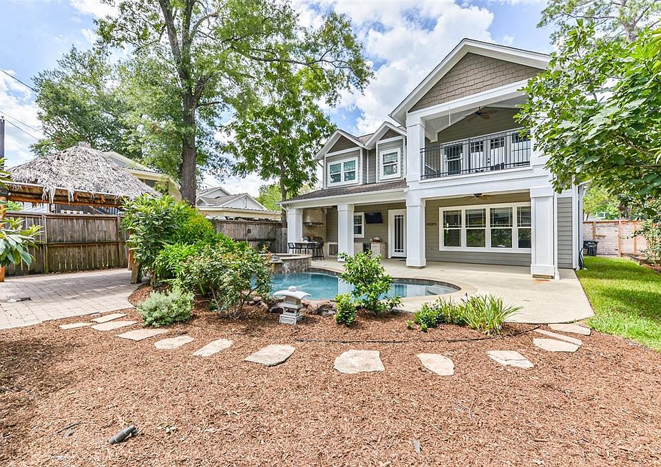 Stunning, custom built, 4 bedroom home w/pool, spa & outdoor kitchen located in highly sought after Oak Forest & zoned to exemplary Oak Forest Elementary. 2 story foyer greets you upon entry & gleaming hardwoods throughout the living spaces on the 1st floor. Private study w/French doors for privacy is to the left. Lovely dining room w/custom chandelier, double crown molding, connected to the kitchen by a butler\'s pantry. Huge chef\'s dream island kitchen w/breakfast seating on oversized island. Cook up a storm on the 48\'\' Viking Gas Range & Vent Hood. Tons of cabinet/counter space. Living area is open to the kitchen w/4 large windows overlooking pool & a gas wood burning fireplace for those chilly Houston evenings. Amazing Primary Retreat on the 2nd floor w/ensuite bath w/tub & walk in shower, 2 huge walk-in closets & large covered balcony overlooking the back yard. 3 other well-proportioned secondary bedrooms, full bathroom & laundry room also on 2nd floor. Sparkling pool, spa& palapa.