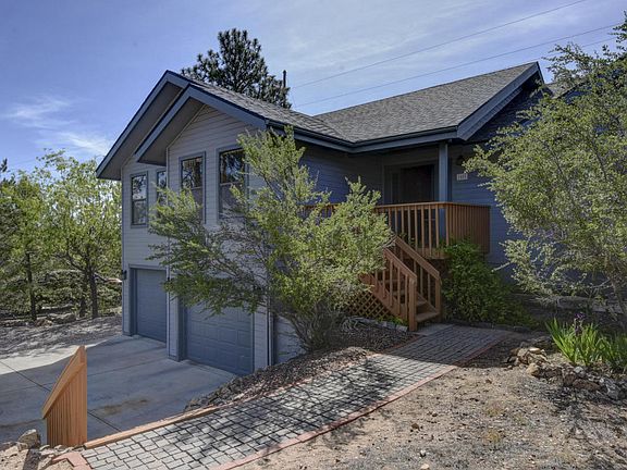 Come see this beautiful custom home, minutes from Downtown that was lovingly built in 1995 by the owner, who has occupied the home ever since. The home has many unique and special features built into the handsome architecture with a vaulted tongue and groove knotty pine ceiling.The entire interior has fresh new paint. Up stairs is a very large Master Suite with private access to a huge deck that runs the length of the house, showcasing magnificent views of the hills leading to Prescott National Forest. Downstairs is a very large second master suite with handicap accessible doors. Under the house is a workshop with massive amounts of storage. This home is like no other, and is definitely a must see!