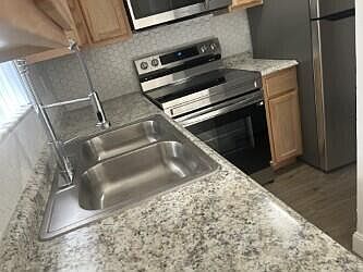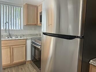 Well appointed condo in close vicinity of business, restaurants and bus line. One of the very few condos with your own private washer and dryer. Cute as a button, new flooring, freshly painted neutral colors, stain steel appliances, private location. First floor condo. Only steps to swimming pool.