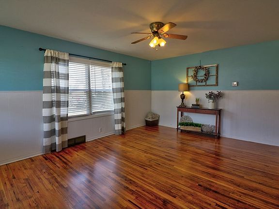 Nice four bedroom home with newly finished hardwood floors and fresh paint! The addition into the family room and 4th bedroom can also be accessed from the garage for more privacy. Vinyl windows throughout. Fenced in yard on spacious corner lot that included the land to the west of house.