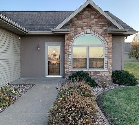 Convenient, single-level living in this 3BR / 1 3/4 Bath condo! Living, dining and kitchen spaces flow together in a relaxed, open design. Kitchen features include stainless steel appliances, under cabinet rope lighting, easy-close drawers, a lazy susan, slide-out shelving, and a center island with storage, outlets and stools. Master bedroom includes walk-in closet and full bath with double sinks. Washer/dryer located in 3/4 bath. You'll find ceiling fans, custom window coverings, and great storage throughout this home. Attached, 2-car garage with mechanical closet, indoor water spigot, shelving, walk door and pull-down stairs to attic. Attractive, maintenance free exterior with stone veneer and vinyl siding. Monthly HOA fee covers lawncare, snow removal, and clubhouse access...just a short walk across the lawn from the back patio. Great location with easy access to Hwy 218!