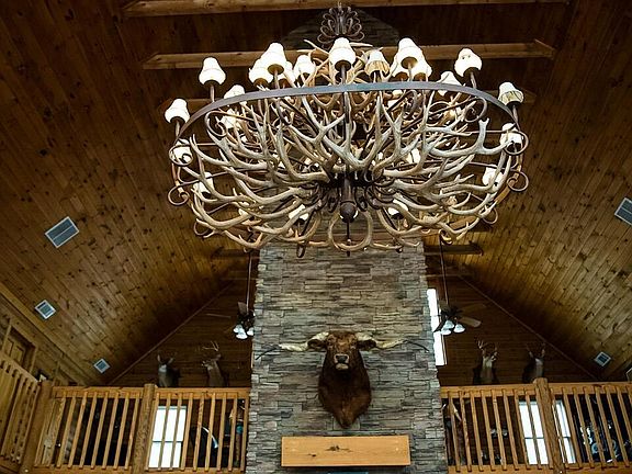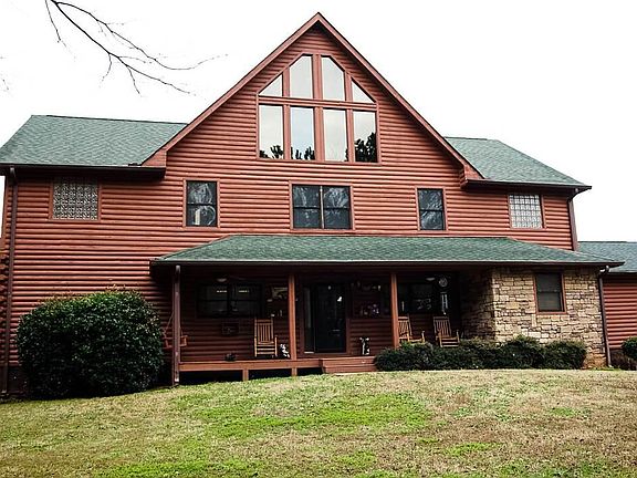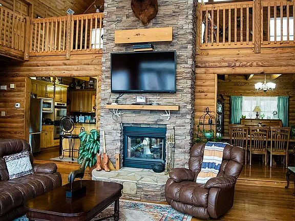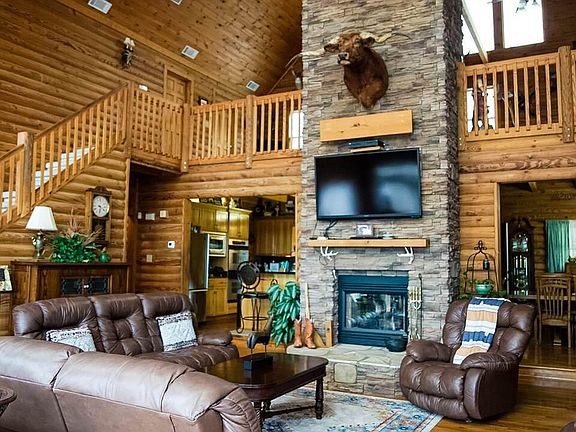Welcome to Paradise! Amazing 5bd, 5.5 ba, 3 story Log home on 43.67 acres. Great location, easy access to everything! Home features master on main level, beautiful kitchen w/island, solid surface countertops, stainless steel appliances, opens to an amazing two story greatroom with floor to ceiling windows with a magnificent view out the back. All three floors have a fireplace w/gas logs, every bedroom has it own private bath. Out back is a 16x40 inground pool. When you enter the property at the front gate, going down the winding driveway there is fenced pasture on both sides. On the right side of the property is a 30x50 2 yr old barn-has 2 stalls, feed rm and tack rm (all rough cut lumber) w/led lights, 2-1500 sq ft car garages w/car lift, air compressor and led lights, a 28x40 diner/man cave w/half bath (has sep electric meter, water and septic tank), great for weddings, parties, family gatherings, etc, a chicken coop, another 20x40 barn w/loft, a RV shed with 30m amp plug, water & septic. On the back side of the property is a creek, with a lot more land that is not fenced. Lots of wildlife for the hunters! So much to this property to even list it all! Call for appt.