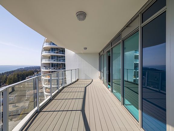 Enjoy the breath-taking panoramic ocean/mountain views from this luxury southeast corner home. This like new 2-bedroom (both ensuites)/2.5-bath home features 9'ceiling, a spacious open-concept living room, high end Miele appliances, and a huge wrap-around patio w/gas bib connection. Walking distance to shops, groceries and beach. Access to 10,000 sq ft of health and wellness amenities including an indoor/outdoor pool, spa, sauna, vusiness lounge and a full service concierge. Available Feb 15, 2024 **No Pets, no smoking on property** **2 Parking included** **credit check and tenant insurance required** Please provide a brief introduction information if interested to view the property, such as # of people living, move-in date, current status in Canada, etc... credit check no pets no smoking