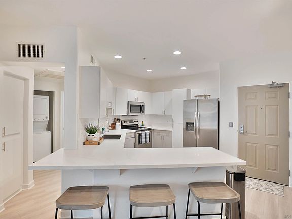 Welcome to Little Italy living. This is a fully furnished one bedroom and 1 full bathroom condo located steps away from all that Little Italy has to offer. Home offers kitchen with open floor plan layout. Kitchen features stainless steel appliances with oversized granite counter tops. Lots of kitchen cabinet space. A separate dining area and living room. Spacious bedroom with balcony access. Enjoy the outdoors on your balcony. Indoor laundry unit along with central heating and AC. Complex offers Pool, Spa, Gym and underground gated one parking space. Situated in a great location you can walk to all the restaurants, shops and cafes along with the weekly Little Italy farmers market. Close to Balboa park, Downtown and Water front. Easy access to freeway and minutes from the Airport. Come and enjoy the essence of Little Italy living. Home is available for lease starting 11-22-2025 with an end date of lease on June 30th, 2025. This is a fully furnished home.