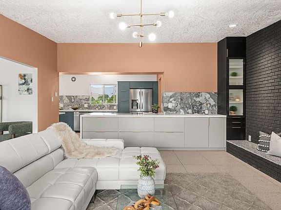 This beautifully updated Mid-Century Modern ranch sits on a spacious half-acre lot in the heart of Rio Rancho, offering a rare blend of space, style, and location. Home has been thoughtfully updated throughout! Inside, you'll find two oversized living areas, including a cozy family room with a brick fireplace and direct backyard access. The light-filled kitchen features a modern remodel with open flow to both dining and living spaces--perfect for everyday life and entertaining. A large laundry room and extra storage add convenience. Outside, enjoy ample space for gardening or future projects, plus a backyard storage unit. Conveniently located with easy access to Albuquerque, shopping, and dining.