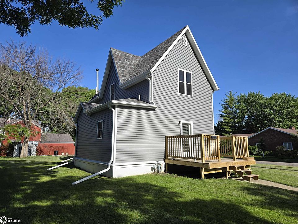 Don't miss your chance at this great 1.5 story home on a corner lot in a nice neighborhood! You'll love all the beautiful updates done to this home within the past year including new siding, new roof, new deck and new windows! This 2 bed, 2 bath home features a large living room, spacious dining leading to the kitchen with appliances staying, and an 18x6 bathroom on the main! Upstairs are two nice sized bedrooms and an updated 3/4 bath with walk-in tile shower. Partial basement. Great yard with slab for garage, shed included. Call today to schedule a private showing!