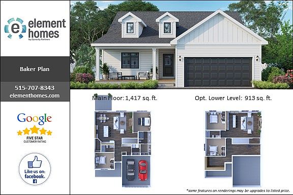 The Baker floor plan is a 2,330 square feet ranch home that is very functional. The heart of the home is an expansive open area that encompasses the kitchen, dining nook and family room. The kitchen features a walk-in pantry and a large working island. Just off the master closet and the garage is a pass-through laundry room making it very convenient. This beautiful kitchen has stainless steel appliances, quartz tops, large pantry and leads to deck for additional outdoor entertaining. Open great room with easy to maintain LVP flooring and large windows. Quartz tops in both baths. Finished basement includes two more bedrooms and large family room. Please note starting prices are subject to adjustments for lot premiums, exterior elevation upgrades, and other upgrades not included. Prices are subject to change without notice. Photos may include upgrades not included.